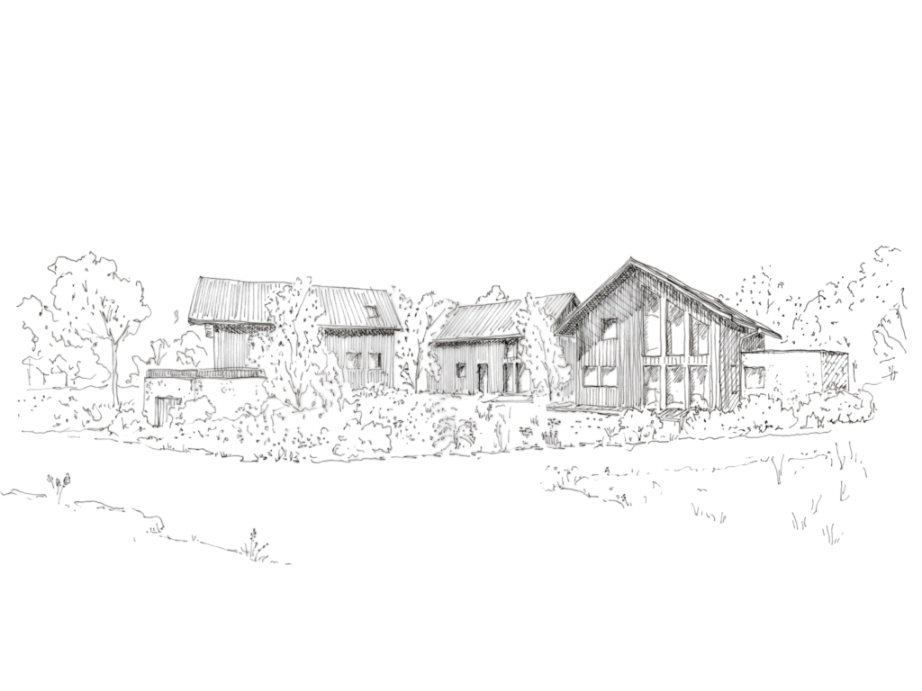 Une recherche pour la création d’une volumétrie simple inspirée du contexte architectural vernaculaire permet de répondre aux usages précis des commanditaires.